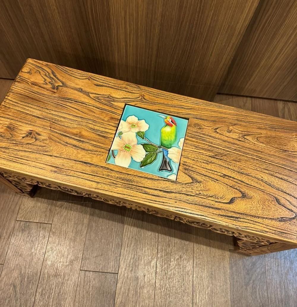 陶板画付 ニレの木椅子(水色地)