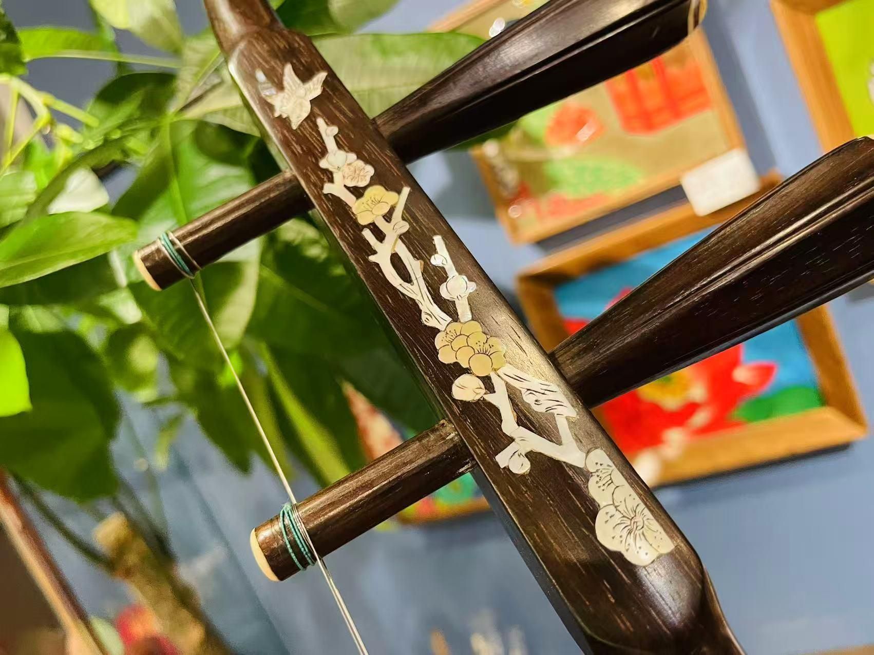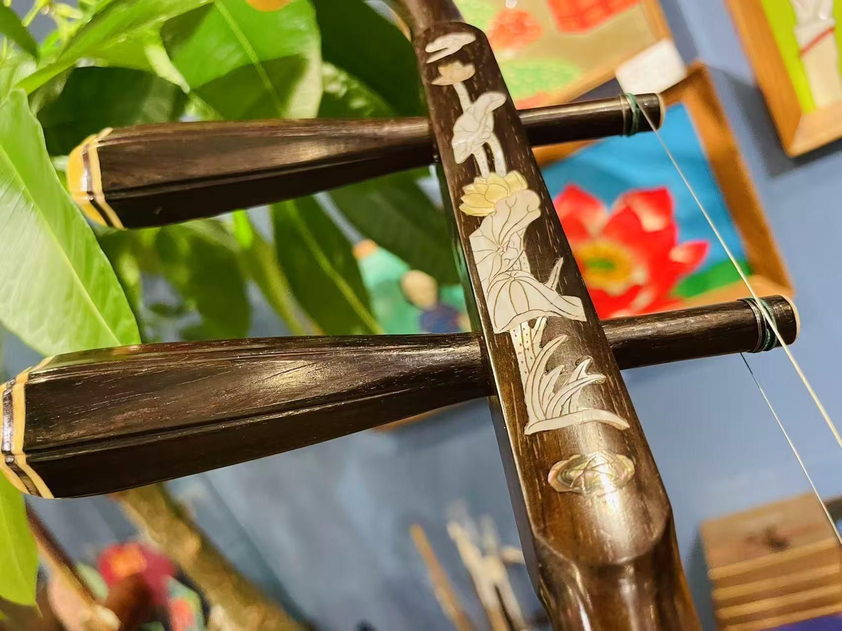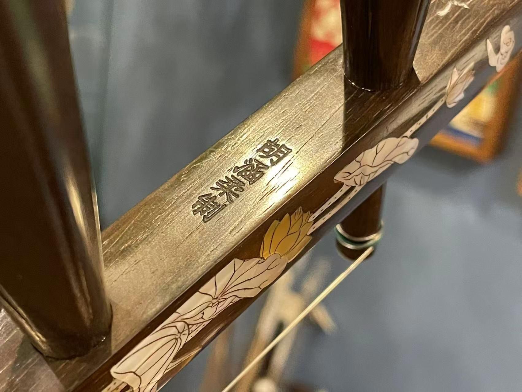 素晴らしい螺鈿細工が施された胡涵柔制作の二胡です。