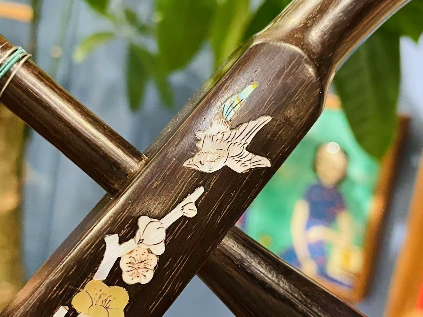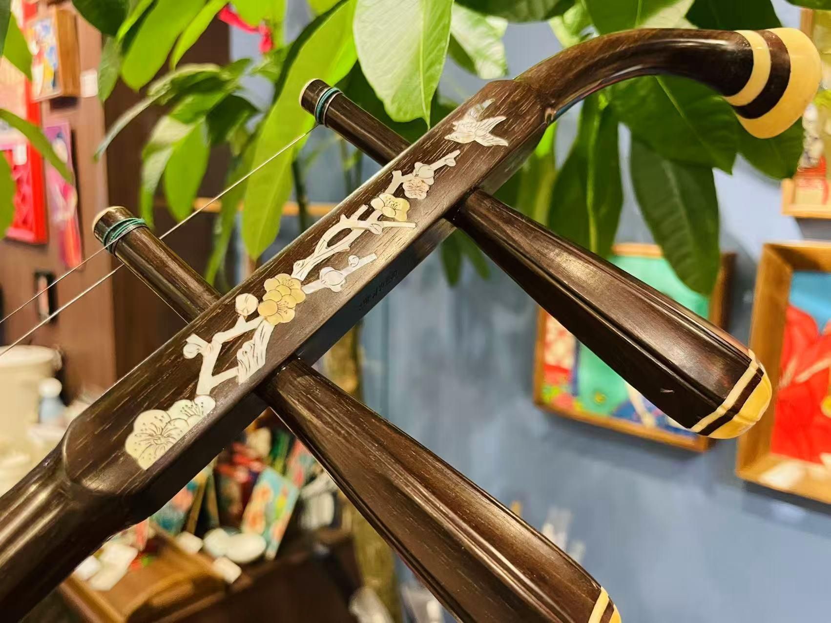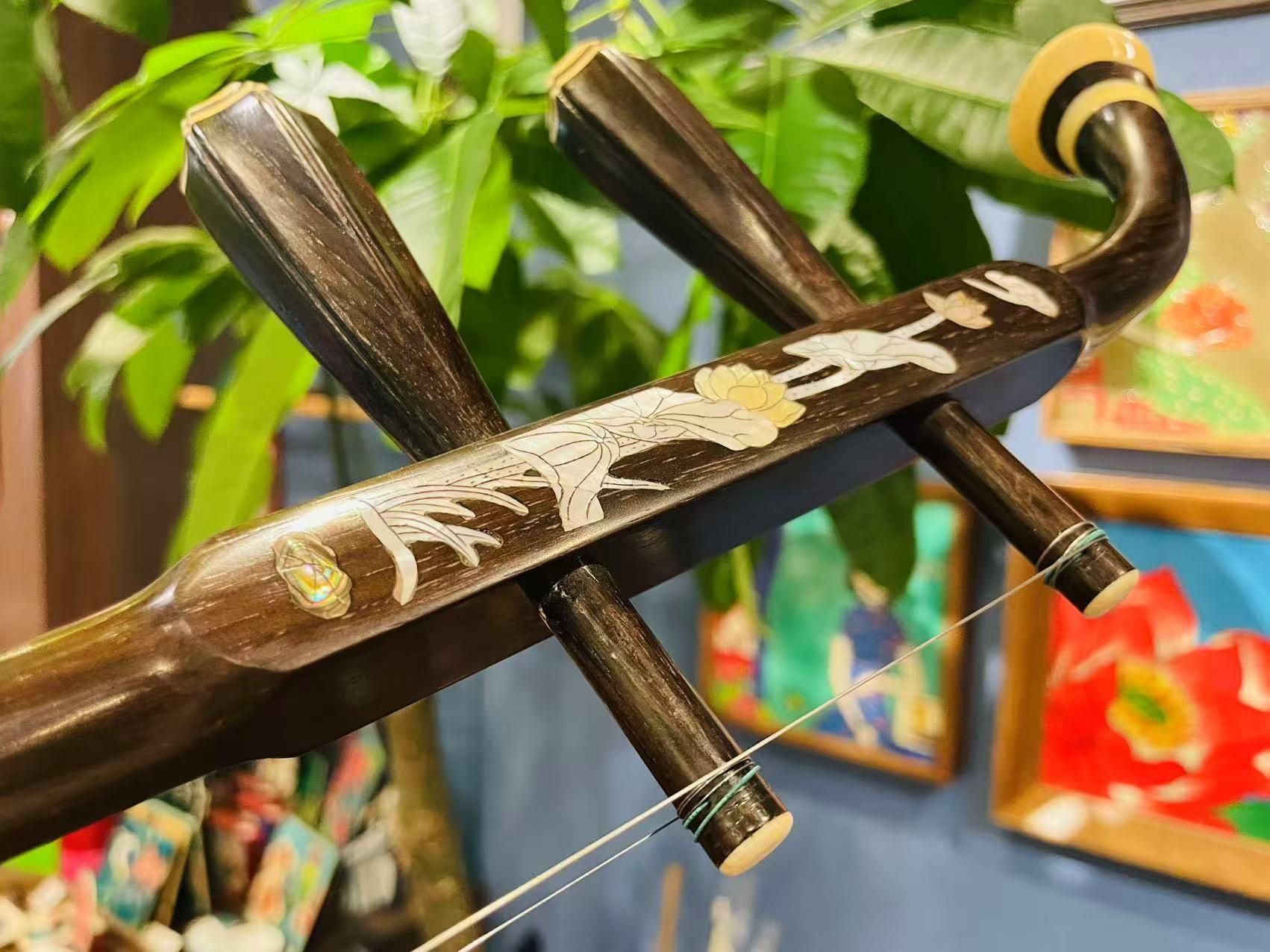 素晴らしい螺鈿細工が施された胡涵柔制作の二胡です。