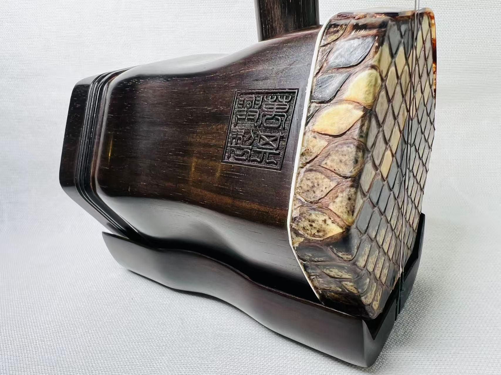 ミャンマーを中心とした東南アジア産ニシキヘビの一番良い皮の鱗の大きな部分を使用することによって出来上がった、長年二胡制作に携わってきた作者のこだわりを実感していただける二胡です。