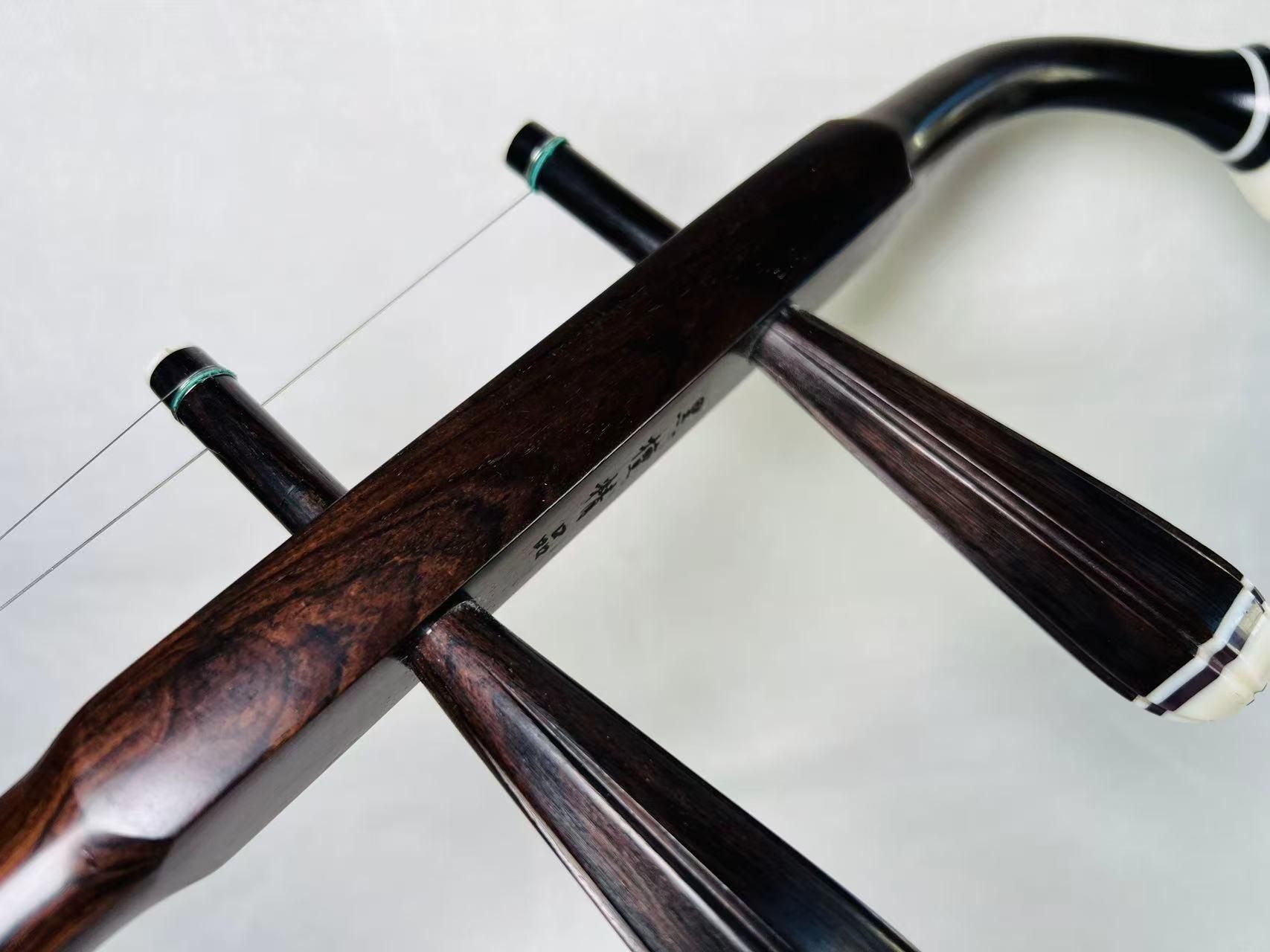 また、音色は、紫檀二胡の華やかさとは異なり、清冽な渓流をイメージさせるような冴えわたる透明感に溢れ、低音から高音まで明るくクリアな音をお楽しみいただけます。